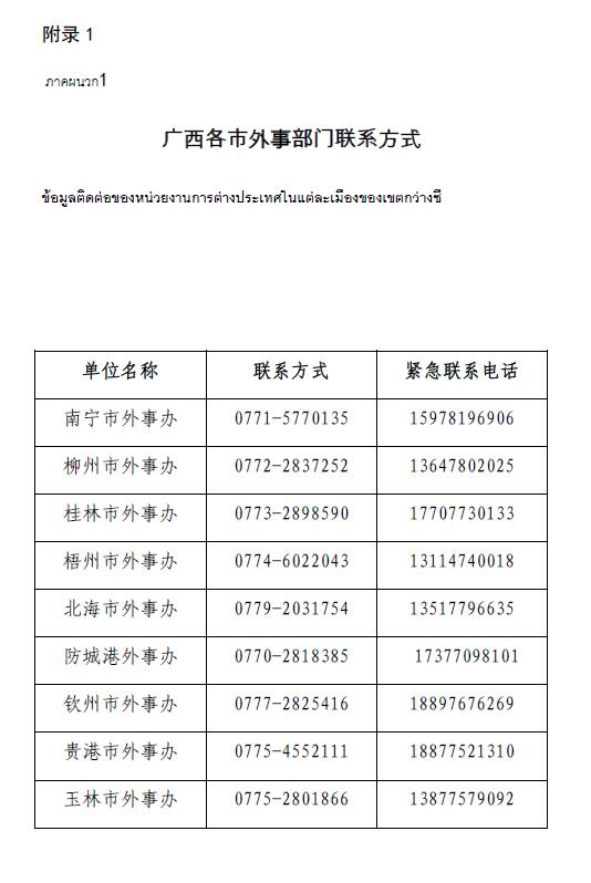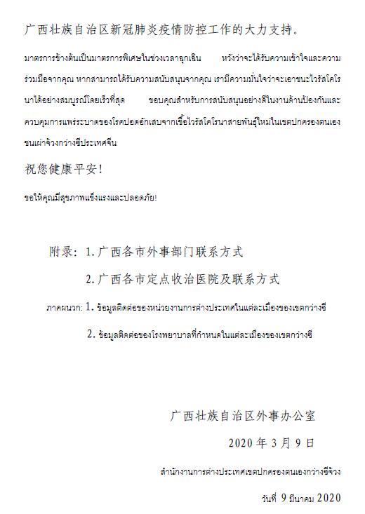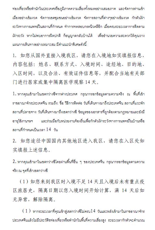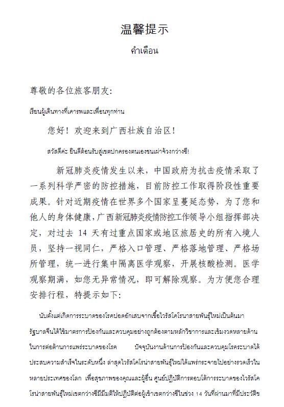 致入桂外国旅客朋友们的温馨提示(中泰版)
