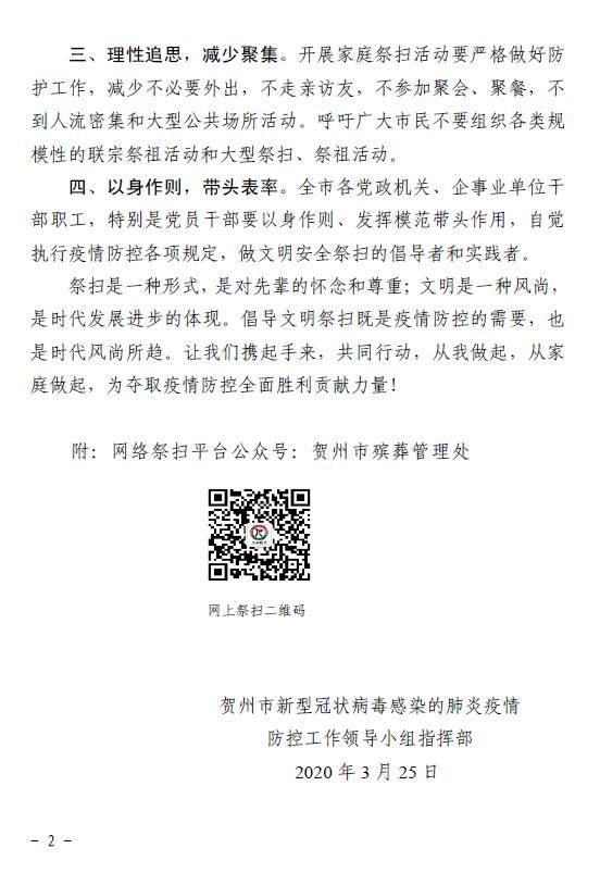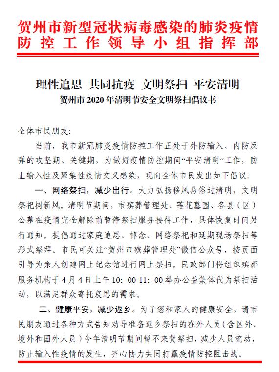 贺州市2020 年清明节安全文明祭扫倡议书