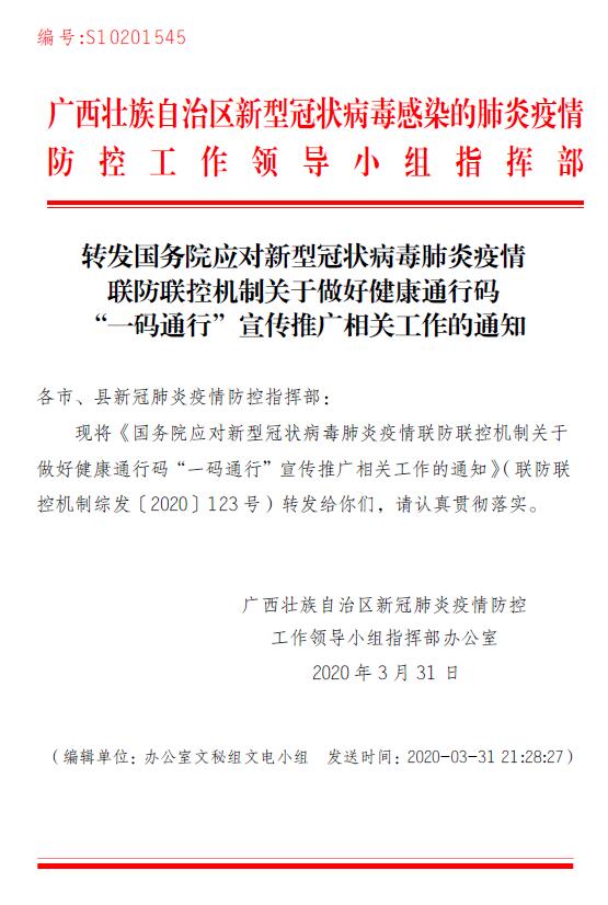 下一条:桂新冠防指办〔2020〕72 号:关于进一步做好广西健康码转码工作的通知