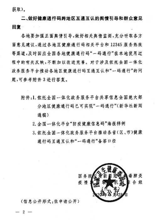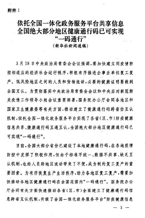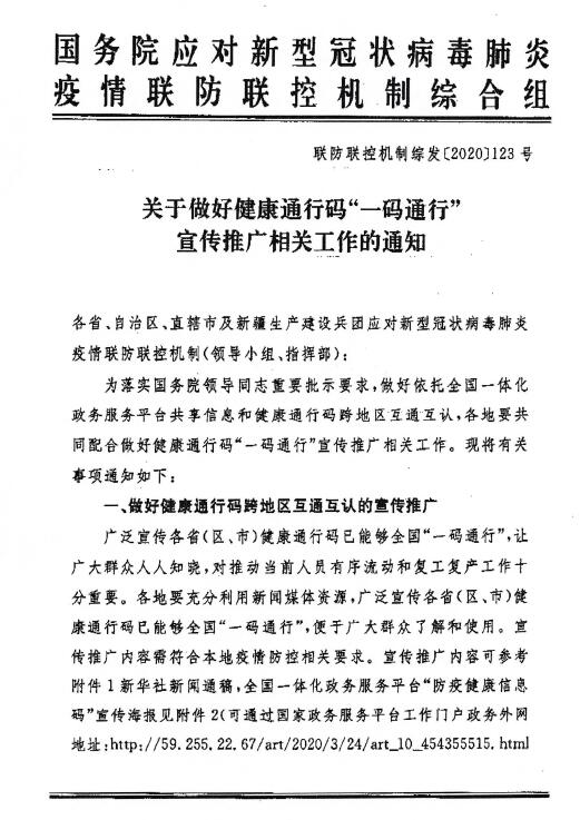 转发国务院应对新型冠状病毒肺炎疫情联防联控机制关于做好健康通行码“一码通行”宣传推广相关工作的通知