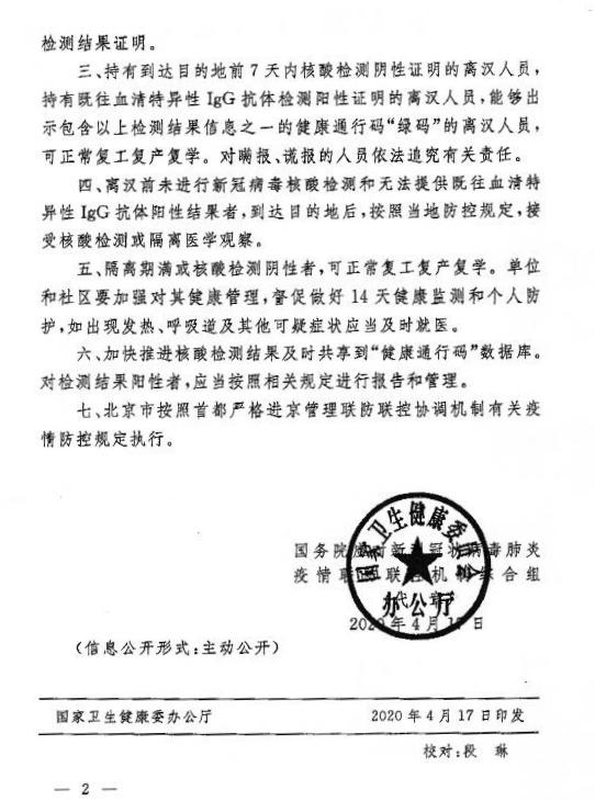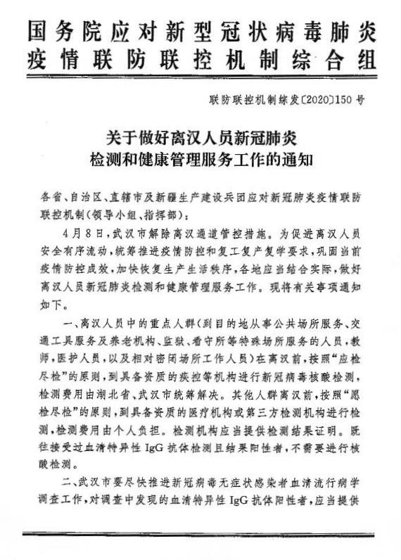 转发关于做好离汉人员新冠肺炎检测和健康管理服务工作的通知
