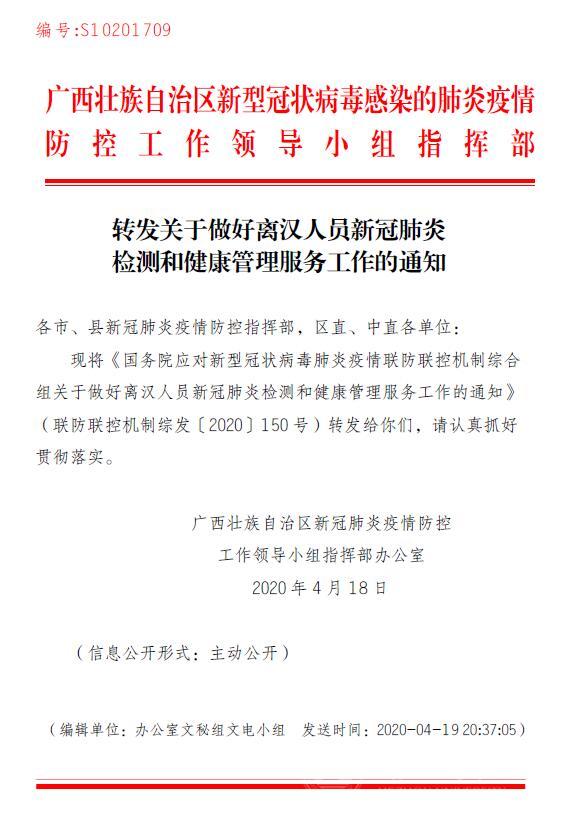 下一条:桂新冠防指〔2020〕136号:关于进一步加强管理严防新冠肺炎疫情输入传播扩散的紧急通知